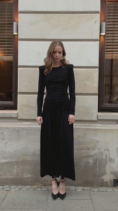CZARNA DZIANINOWA SUKIENKA CASTELLA Z DRAPOWANIEM