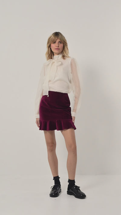 KREMOWA JEDWABNA KOSZULA ARDORE Z SZARFĄ